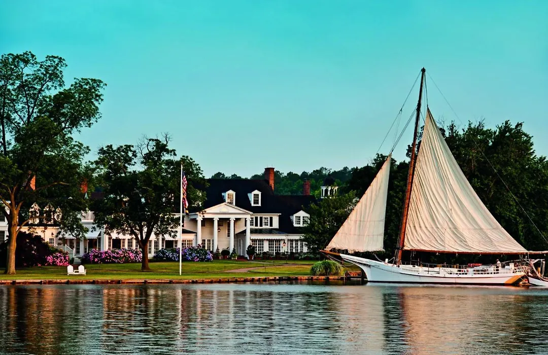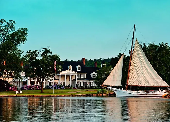 Inn At Perry Cabin, a 5-star hotel in Saint Michaels, Maryland, offers casual luxury along the serene Miles River. Guests benefit from a state-of-the-art golf course, luxurious spa facilities, and waterfront dining options, all set within 26 acres of beautiful gardens and orchards.