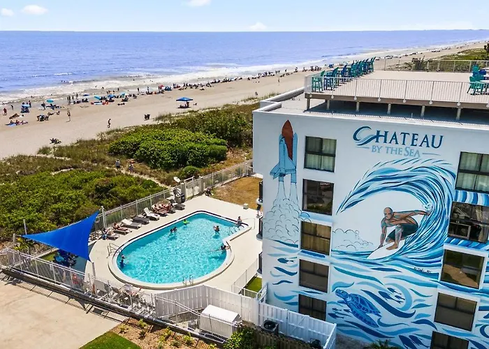 Chateau By The Sea offers direct oceanfront access with a heated year-round outdoor pool. This 4-star Cocoa Beach hotel features fully equipped kitchens in its air-conditioned accommodations, catering to both short and extended stays.