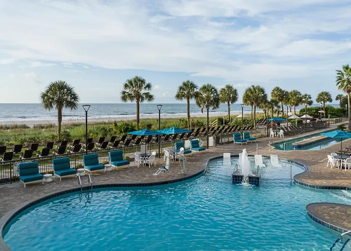Courtyard By Marriott Myrtle Beach Oceanfront, a 3-star oceanfront hotel rated 8.9/10 on Booking.com, provides family-friendly accommodations with beachfront access and an outdoor swimming pool. Guests can enjoy amenities like a fitness center and on-site dining options.