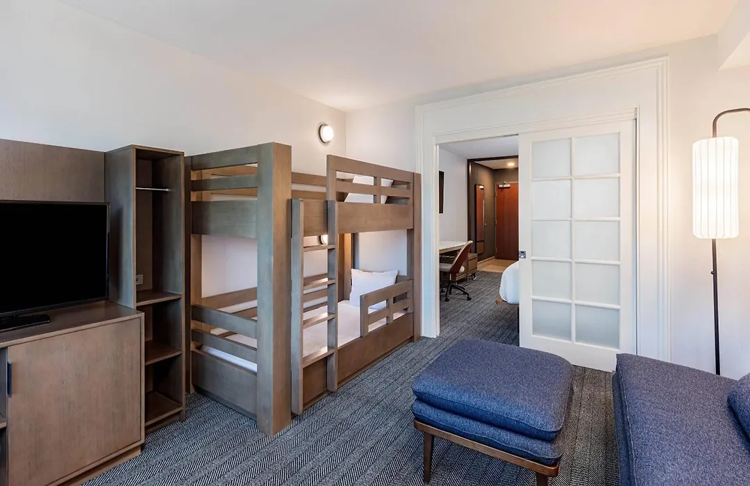 Spacious guest rooms at Courtyard Anaheim include a flat-screen TV, small refrigerator, and free Wi-Fi. Family suites come equipped with bunk beds and a pullout sofa, accommodating larger groups effectively.