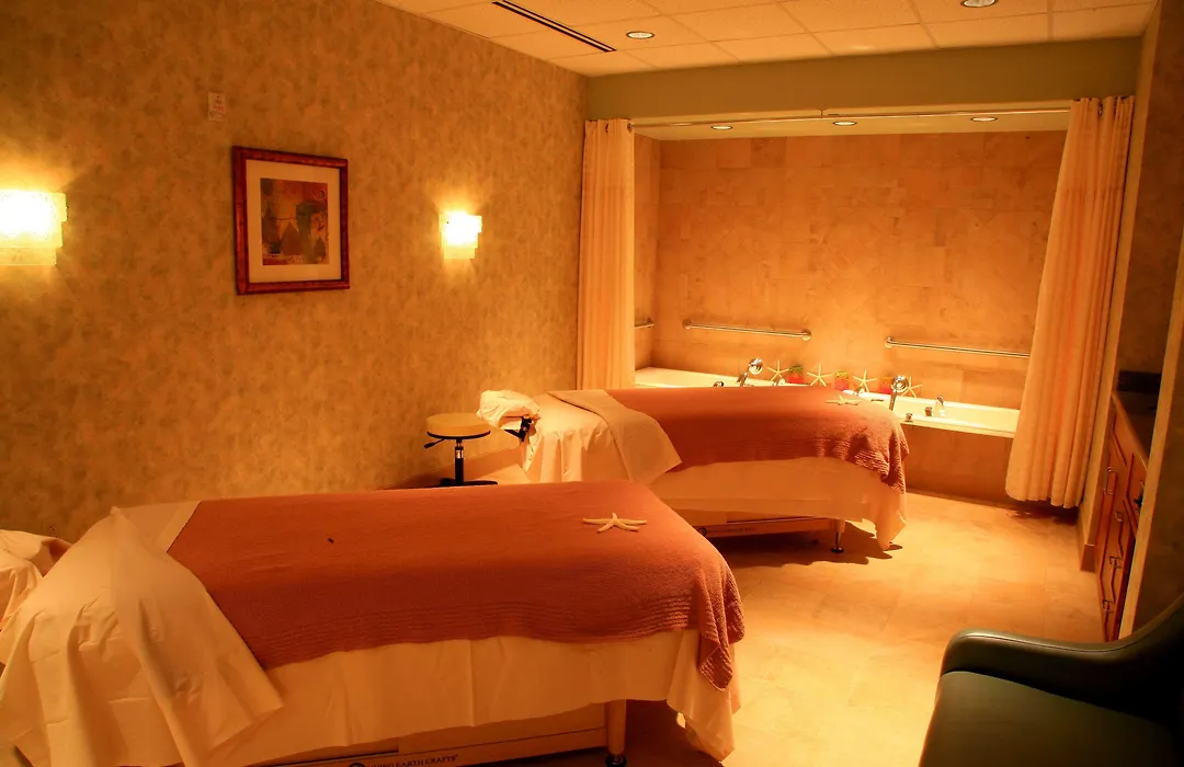 Dining options include the Rocky River Bar & Grille, which serves comfort food classics and inventive salads. Caffeina's Marketplace offers Starbucks coffee, pastries, and to-go options. Room service is also available for in-suite dining.