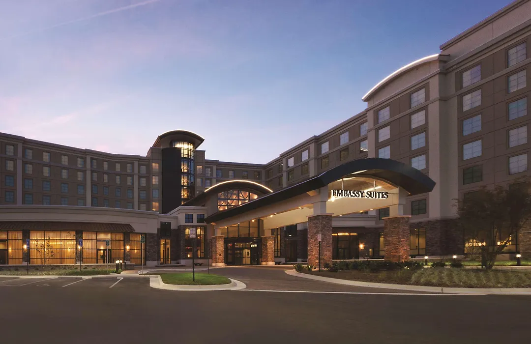 Each suite at Embassy Suites Springfield includes air conditioning, a seating area, a mini-refrigerator, two 40-inch LED HDTVs, and complimentary WiFi. The hotel offers room service and accessible meeting rooms for events of up to 400 guests, providing a broad range of amenities for various needs.