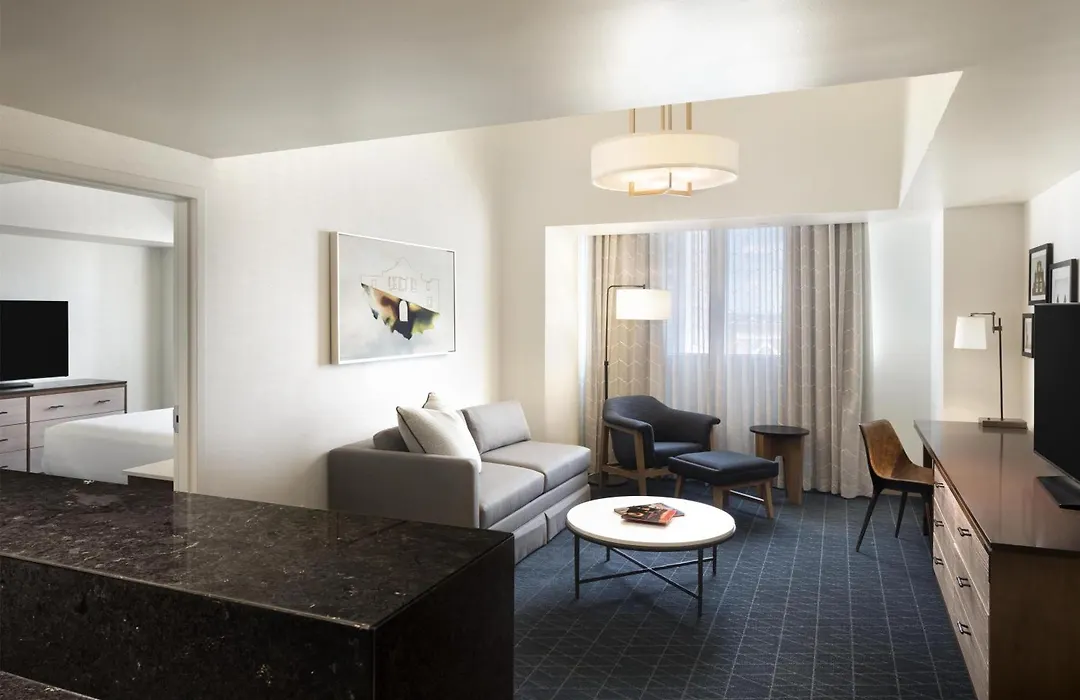Guests can enjoy recreational amenities such as an outdoor heated lap pool and a 24-hour health club. The hotel features meeting facilities totaling 115000 square feet, ideal for events. Comfortable lounge chairs provide an ideal setting to relax and take in city views.