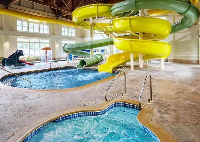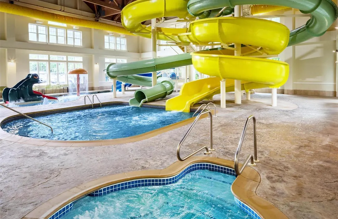 Leisure activities span all four seasons, including hiking, golf, and fishing in addition to winter sports. The hotel's indoor water park features open swim blocks, while the fitness center is available for exercise routines.