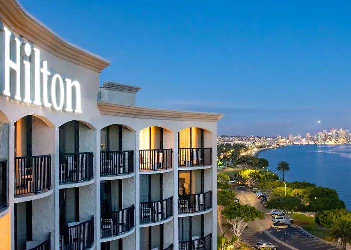 Hilton San Diego Airport/Harbor Island is a 3-star waterfront hotel offering scenic views of the marina and downtown skyline. This completely non-smoking property features modern guest rooms, an outdoor pool, and a fitness center, all designed to suit various traveler needs.