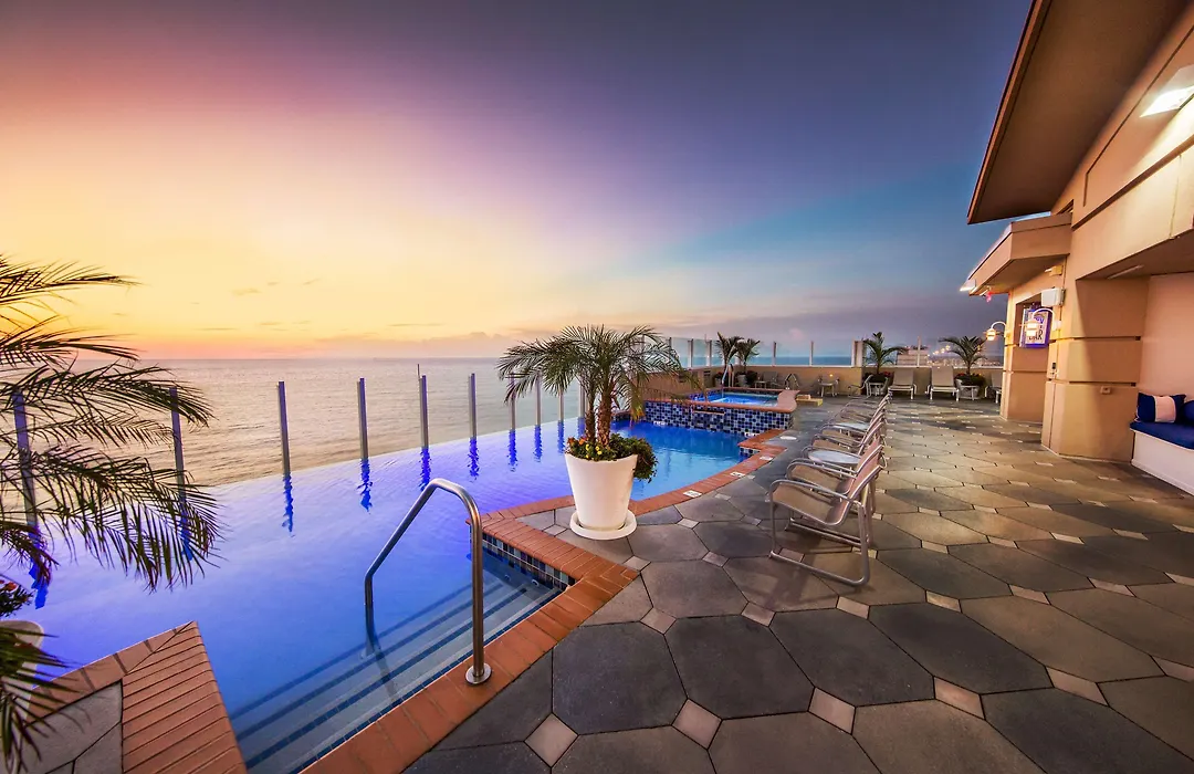 Dining options include Catch 31 Fish House & Bar, offering fresh seafood with ocean views, and Salacia, an upscale steakhouse. Guests can enjoy seasonal rooftop dining at Sky Bar, which features live entertainment Thursday through Sunday nights.