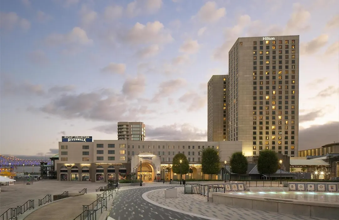 Hilton New Orleans Riverside, a 4-star hotel with an 8.4/10 rating on Booking.com, offers extensive amenities including six dining options, two heated outdoor pools, and an indoor pickleball court. Situated along the Mighty Mississippi, it provides access to prominent attractions like the French Quarter and Caesars Casino.
