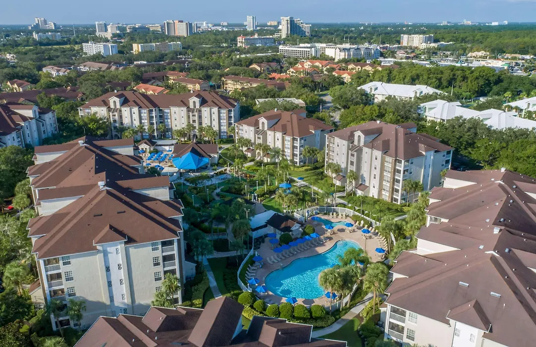The resort is conveniently located just minutes from major attractions like Disney Springs and Walt Disney World Resort. The nearby bus stations offer easy access to public transportation options, including the Disney Skyliner. Orlando International Airport is approximately 18.6 miles away.