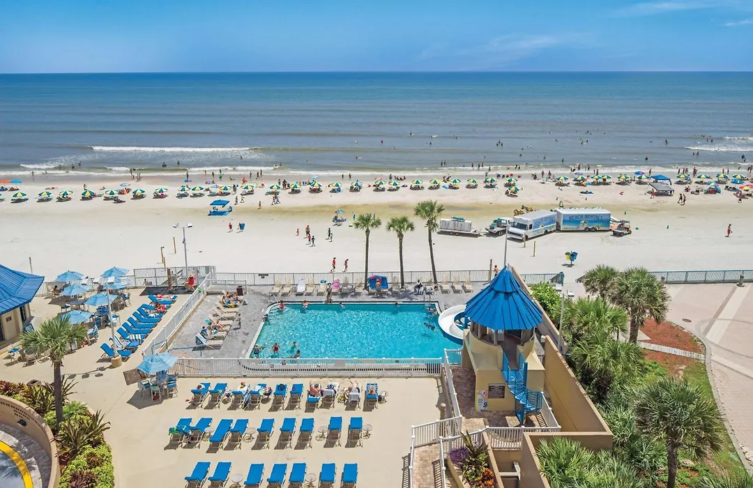 The hotel is conveniently located 100 feet from the beach and within 6.2 miles of Daytona Beach International Airport and Daytona International Speedway. Transportation options include the Daytona Beach Intermodal Transit Facility, just a five-minute walk away.