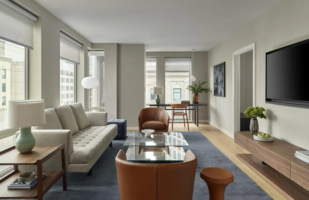 Accommodations at Hotel Aka Back Bay include newly redesigned guest rooms and suites, featuring plush bed linens, Nespresso coffee makers, and fully stocked mini bars. The Signature Suite offers 700 square feet of space with distinct living and dining areas, while the Penthouse Suite encompasses 950 square feet, providing sweeping views of Back Bay.