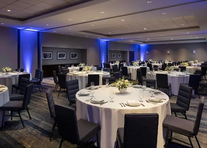 Guests can maintain their fitness routines in the well-equipped 24-hour gym or take a dip in the indoor pool. The hotel offers six event spaces for meetings, with customizable menus and A/V equipment available on-site.