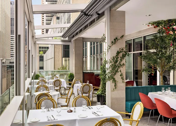 Dining options include the Terrace Club restaurant, serving classic American dishes with views of Rockefeller Center. Nearby restaurants such as Johnny Utah's and Bill's Bar & Burger provide additional dining choices.