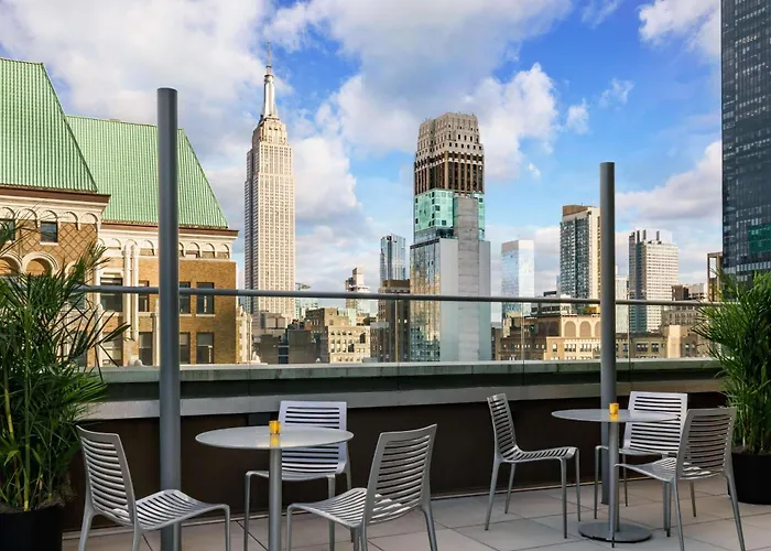 Recreational facilities include a fitness center and a rooftop bar overlooking the skyline of New York City. Guests can easily access major attractions, including Times Square, Central Park, and the New York Public Library, all within 2.5 miles.