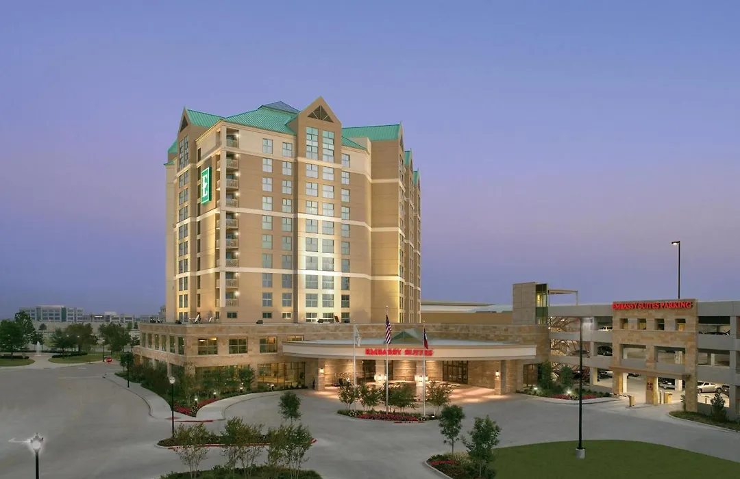 Embassy Suites provides additional benefits such as a 24-hour fitness center, self-parking options, and a complimentary area shuttle. Nearby attractions include Texas Legends, The Star, and the Ford Center. The nearest transport station is Northwest Plano Park & Ride.