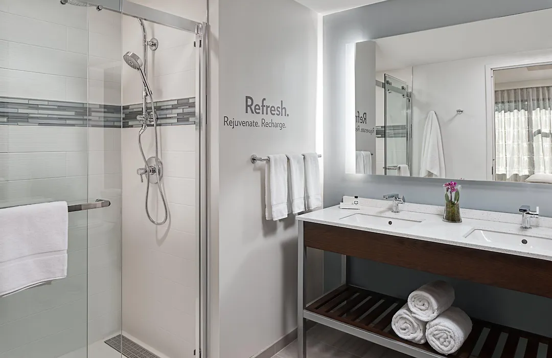 The hotel's onsite restaurant, Cork and Kale, offers an à la carte breakfast. Additional dining options are accessible within 0.6 miles, including Top Spice and Blaze Pizza.