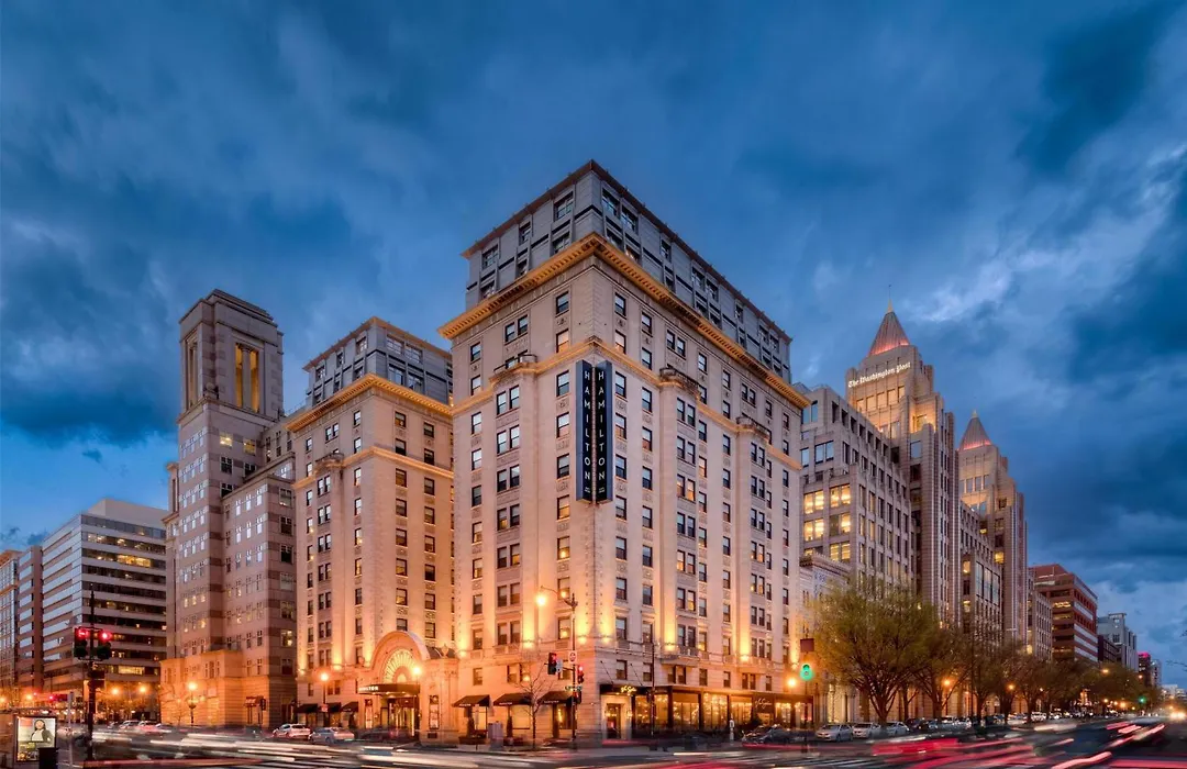 Rooms at Hamilton Hotel - Washington Dc feature luxurious bedding and high-performance bath products from skoah. The hotel provides a variety of accommodation options, including connecting rooms and spacious suites tailored for families and groups.