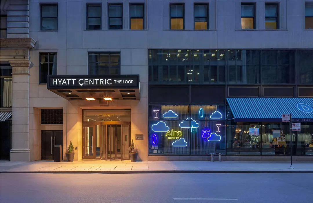 Hyatt Centric The Loop Chicago, a 4-star hotel with an 8.6/10 rating on Booking.com, features modern amenities, a rooftop bar, and an on-site French brasserie. The hotel boasts a historic art deco building with vibrant details and is pet-friendly.