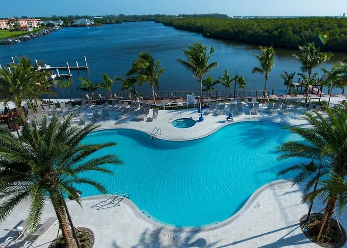 Dining options feature Latitude 26, offering comfort foods and pool views, and H Bar, which provides room service and a relaxing atmosphere. The hotel's complimentary hot breakfast includes made-to-order omelets.