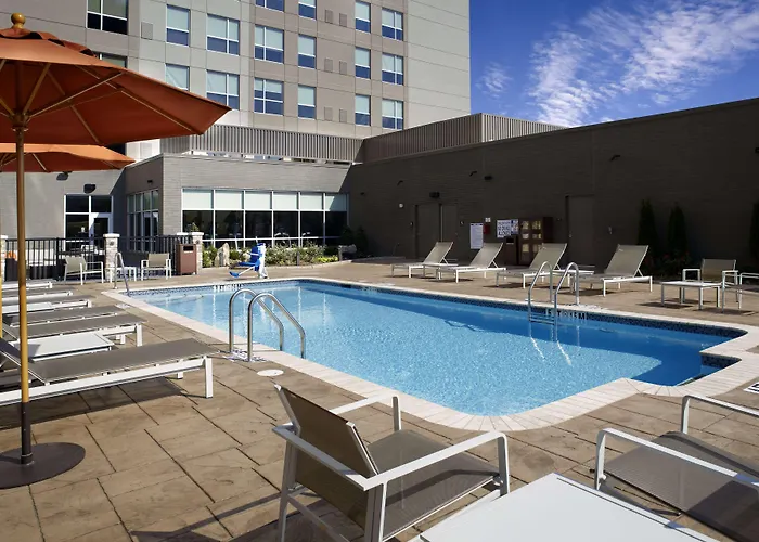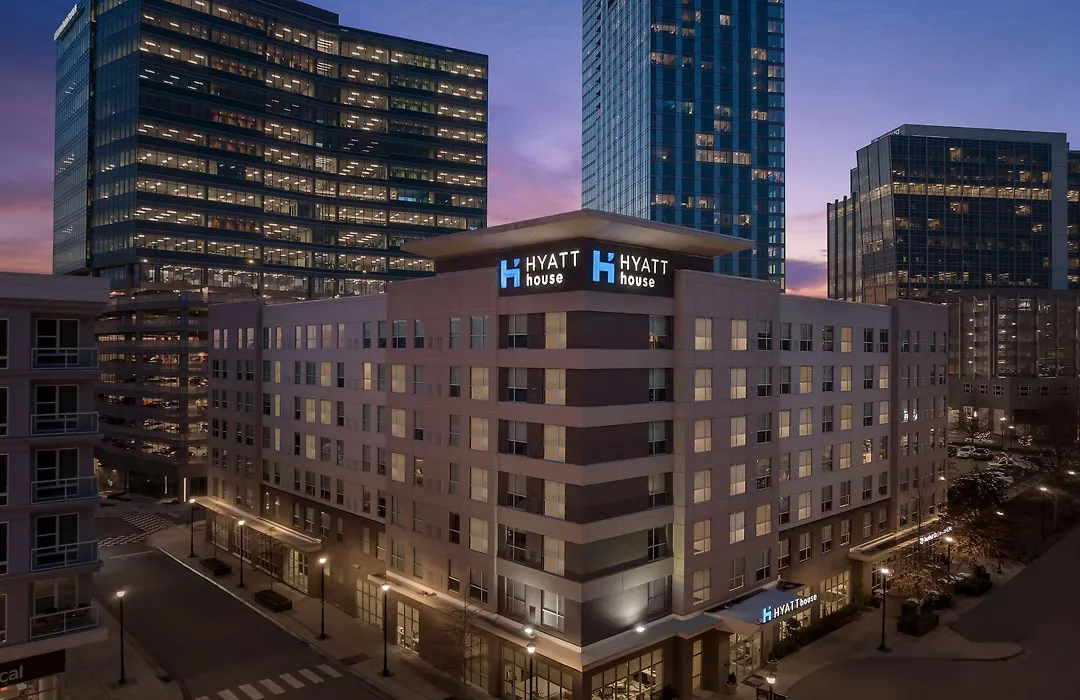 Hyatt House Raleigh North Hills, a 3-star Raleigh hotel with a rating of 9.1/10 on Booking.com, offers guests suites equipped with kitchens for a home-like experience. Additional amenities include a seasonal outdoor pool, a restaurant, and a complimentary hot breakfast.