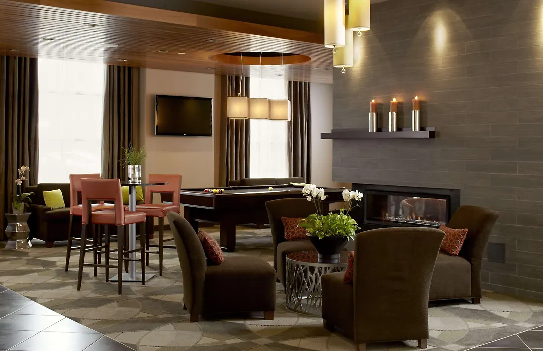 Leisure amenities at Hyatt House include an indoor pool and a 24-hour fitness center complete with cardio equipment and free weights. The outdoor patio off the pool area provides a relaxing space for guests. The hotel is also pet-friendly, accommodating both guests and their pets.