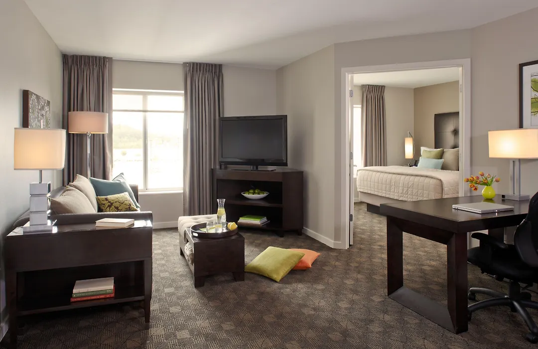 Guest rooms at Hyatt House Shelton include premium bedding, a flat-screen TV, and high-speed WiFi. Suites feature spacious living areas with sofa sleepers, ideal for longer stays or families.