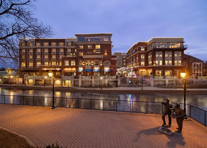 Hotel Indigo Naperville Riverwalk is situated near notable landmarks, including the Riverwalk and Naper Settlement, with the Naperville Metra station just 0.6 miles away for convenient access. Pets are welcome, and the hotel provides accessible parking and facilities.
