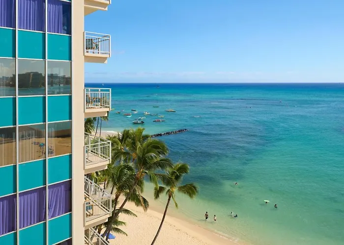 Kaimana Beach Hotel, a 3-star Honolulu hotel with an 8.3/10 Booking.com rating, offers beachfront access at the edge of Waikīkī and a tranquil atmosphere that appeals to both locals and visitors. Guests enjoy features like private balconies and the renowned Hau Tree restaurant.