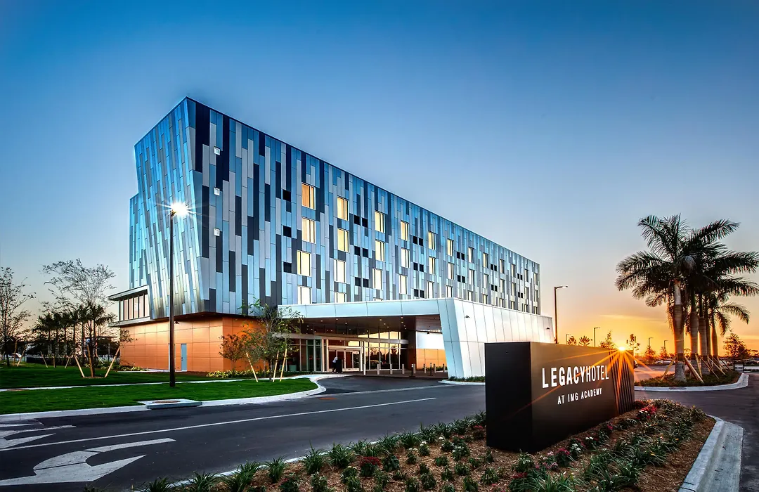Legacy Hotel At Img Academy is a contemporary boutique hotel offering modern luxury and unique experiences. This 4-star Bradenton hotel features 150 guest rooms designed for comfort and performance, along with a range of amenities including a heated resort-style pool and a 24-hour fitness center powered by Technogym.