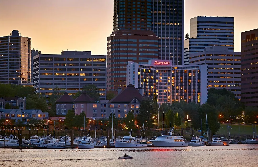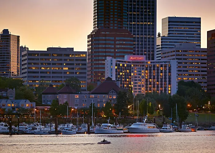 Portland Marriott Downtown Waterfront, a 4-star hotel rated 8.2/10 on Booking.com, is situated directly on the waterfront, offering convenient access to downtown attractions. The hotel features amenities such as a fitness center, free WiFi, and valet parking with electric vehicle charging stations.