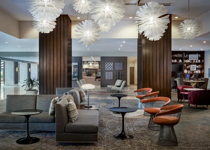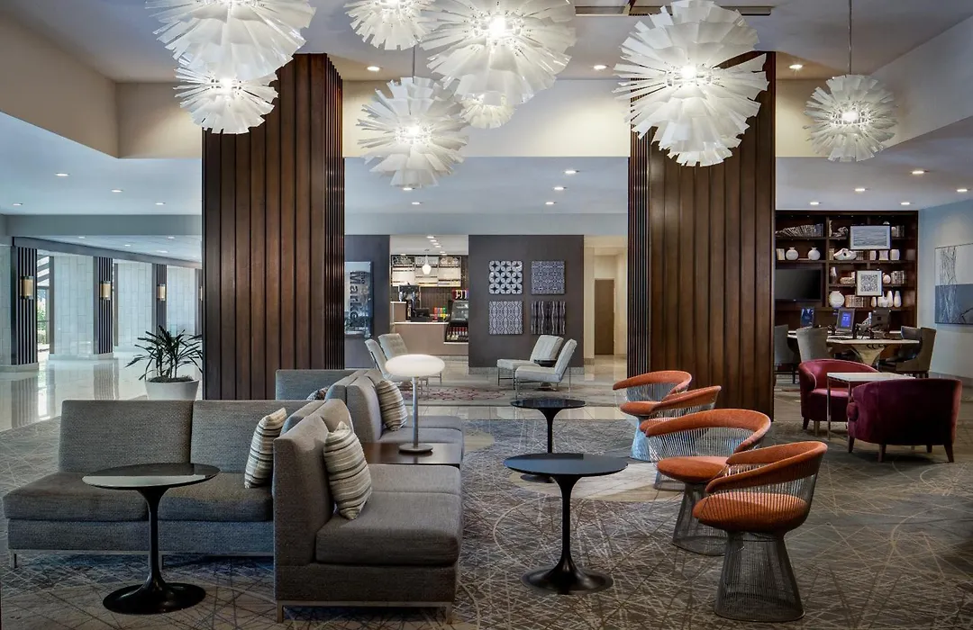 Marriott St. Louis Airport boasts 29000 square feet of event space, making it suitable for meetings and gatherings. The hotel is located near attractions such as the Gateway Arch Riverfront and Busch Stadium, accessible within a 20-minute drive.