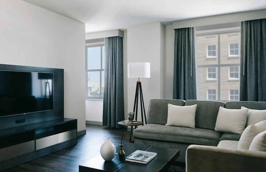 Marriott St. Louis Grand features stylish rooms and suites equipped with premium bedding, high-speed Wi-Fi, and air conditioning, offering scenic downtown views. Guests can enjoy personalized touches such as the This Works bath and body collection and an in-room mini-fridge stocked with snacks.