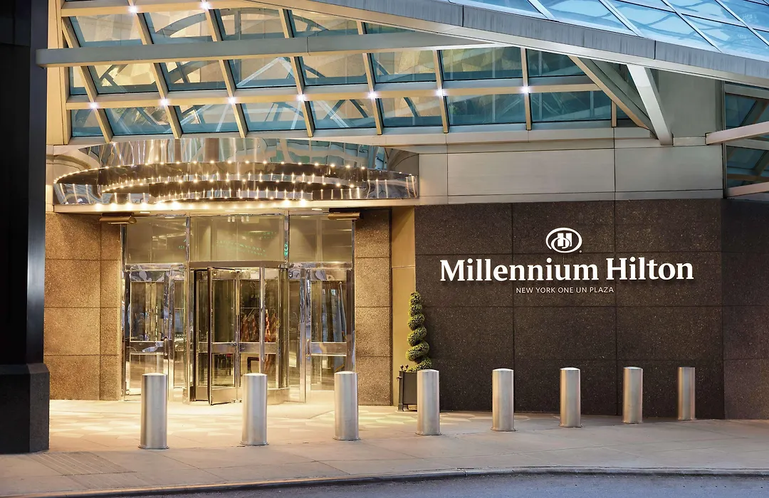 Millennium Hilton New York One UN Plaza features 4-star accommodations with views of the New York City skyline and the East River. The hotel includes amenities such as a fitness center, spa, and a business center. It is situated opposite the United Nations headquarters in Midtown East.
