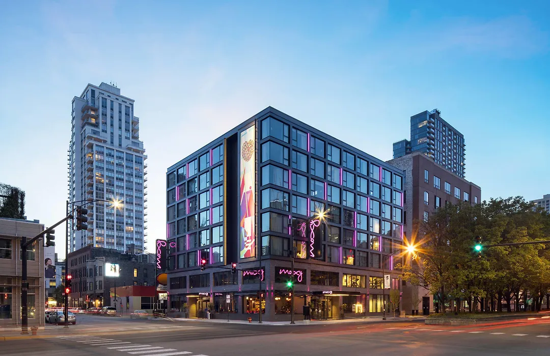 Moxy Chicago Downtown is situated steps away from the bustling dining and nightlife options in River North, marking it as a prime location for entertainment enthusiasts. The hotel is well connected with public transportation, including two subway stops within a six-minute walk. Popular attractions like Navy Pier and Cloud Gate are within 1.2 miles, making sightseeing easily accessible.