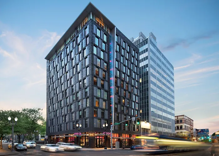 Moxy Portland Downtown is an 8.2-rated, 2-star hotel offering air-conditioned rooms and a fitness center, located in the heart of downtown Portland. Guests can enjoy private parking, a restaurant, and a bar, all within a lively urban setting.
