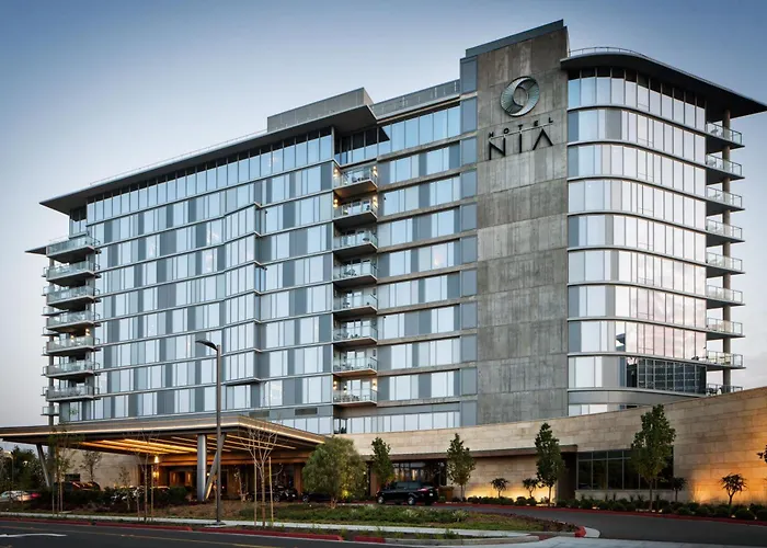 Hotel Nia, Autograph Collection is a 5-star modern luxury hotel in Menlo Park, known for its proximity to Silicon Valley tech giants like Google and Meta HQ. Guests benefit from amenities such as a heated outdoor pool, on-site dining options, and event spaces spanning over 10500 square feet.