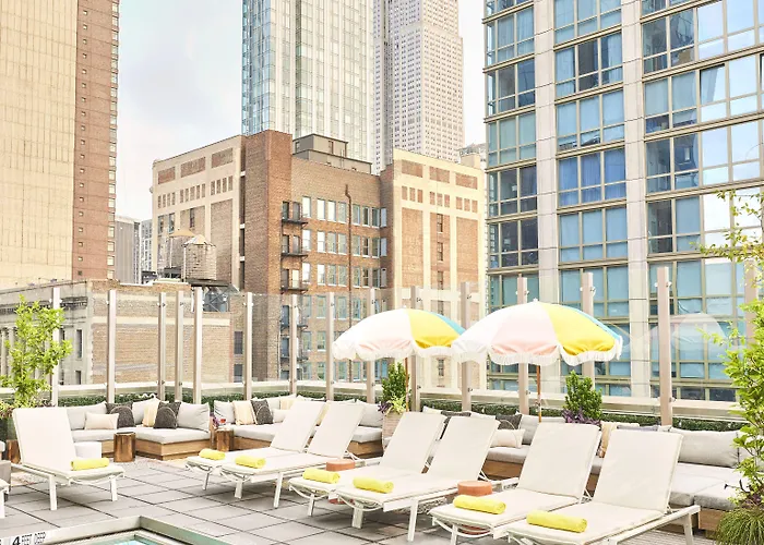 Royalton Park Avenue, a 5-star New York hotel rated at 8.3/10 on Booking.com, offers luxury rooms and a rooftop pool experience just steps from prominent landmarks like the Empire State Building. Additional amenities include an intimate piano bar and a restaurant featuring Northern California-inspired dishes.