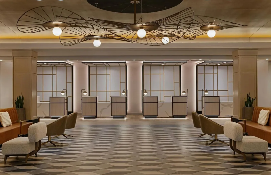 Dining options include SideBar, offering a contemporary American menu, and MARKET, a grab-and-go café in the lobby. The hotel's proximity to eateries such as Eataly and The Cheesecake Factory provides additional dining variety.