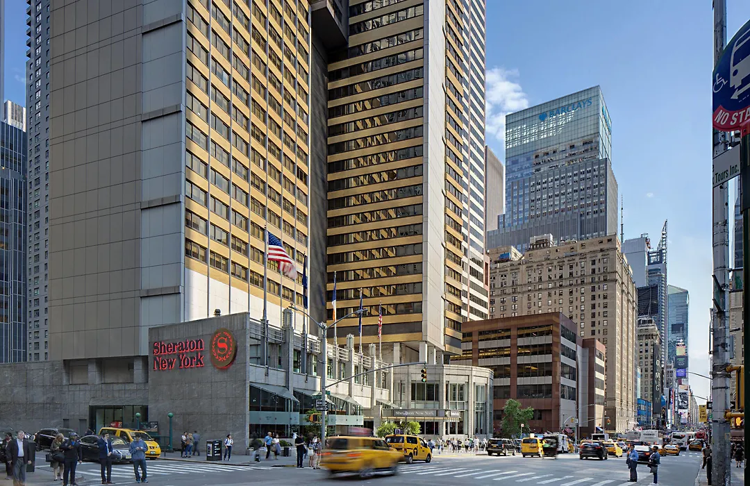 Sheraton New York Times Square Hotel offers urban accommodations with 62000 square feet of event space in Midtown. This 4-star New York hotel features a fitness center with Peloton bikes and dining options including Hudson Market and Library Bar.