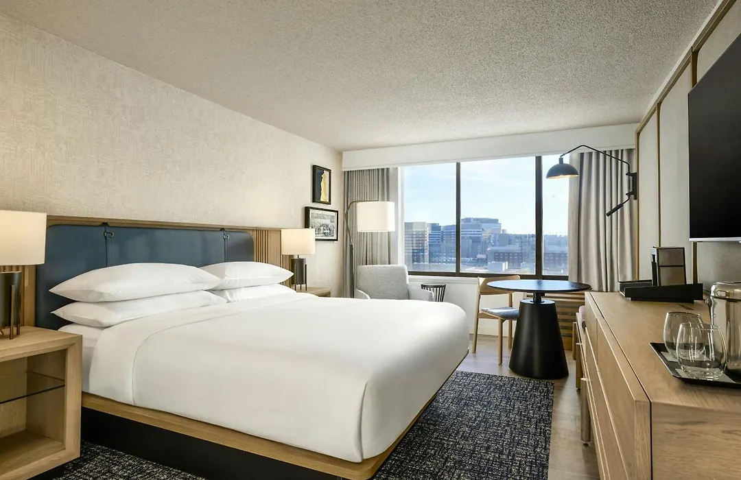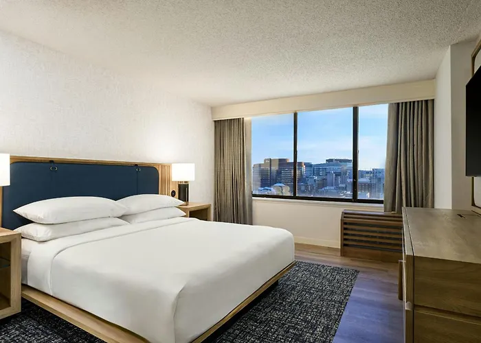 The Sheraton Philadelphia University City Hotel offers 332 guest rooms and 25 suites with premium bedding and modern amenities, including flat-screen TVs and free Wi-Fi. Guests can enjoy vibrant views and cable shows from plush beds during downtime, while families can opt for rooms with two beds accommodating up to four persons.