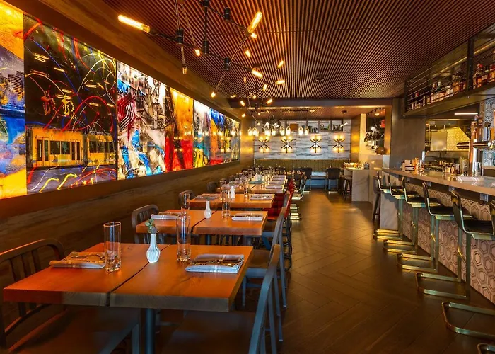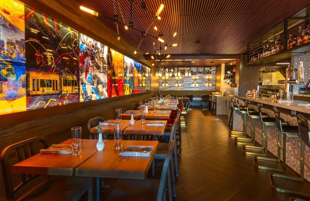 The hotel's Urban Steel Kitchen + Bar serves breakfast, lunch, and dinner, featuring ingredients from the Pacific Northwest. Nearby dining options include Fillmore Trattoria and Groundwork Coffee Co, both only 0.2 miles away.