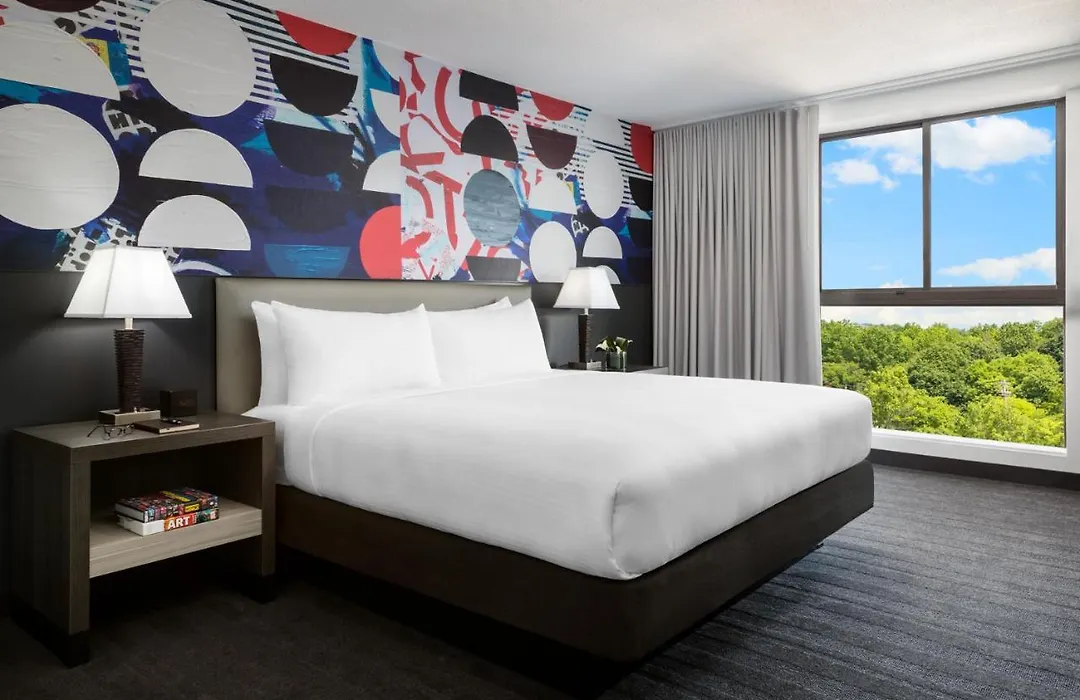 Studio Allston Hotel Boston, a 4-star and 8.2/10 rated hotel, features a unique art-inspired design with over 117 variations of artwork throughout its spaces. It offers amenities such as a fitness center, outdoor patio, and Craft Food Halls dining experience, promoting a vibrant and energetic atmosphere in the Allston-Brighton neighborhood.
