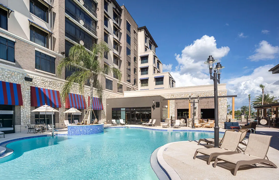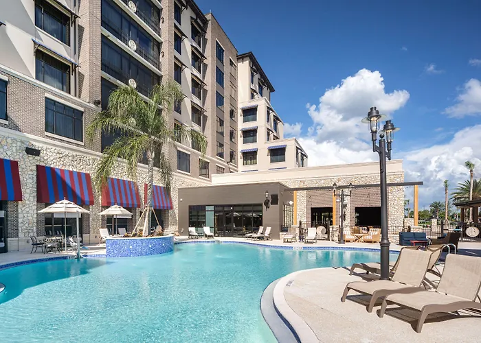 The Brownwood Hotel & Spa, a 3-star hotel in The Villages, offers a variety of leisure and business amenities, including an outdoor swimming pool and an on-site restaurant featuring Wolfgang Puck cuisine. Guests can choose spacious two-room suites with modern comforts and enjoy access to a fitness center and shared lounge.