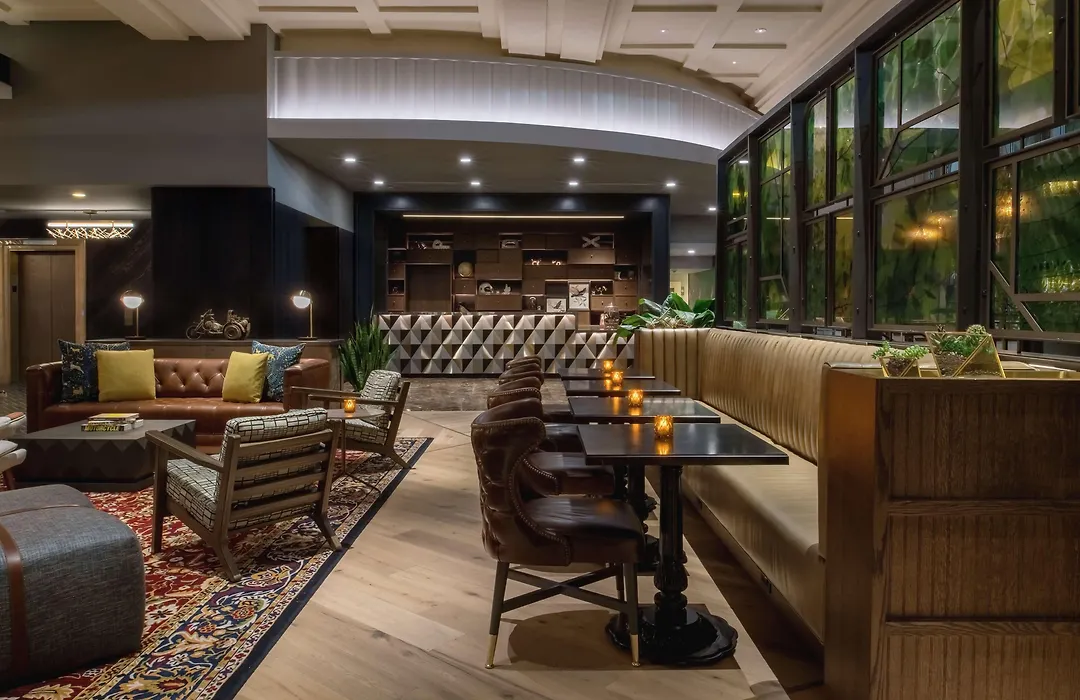 Dining options include Jackrabbit Restaurant, featuring modern American cuisine with a menu crafted by Executive Chef Chris Cosentino. An adjacent cocktail and wine bar offers a selection of drinks, while a lobby coffee bar serves house-made pastries.