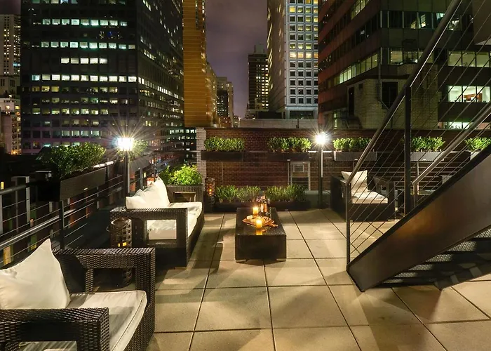 Public transportation options include the subway with two nearby stations: 51st Street IRT Lexington Avenue Line and 59th Street, both around a 6-minute walk. Additionally, various bus routes service the area, enabling easy exploration of New York's renowned sites.