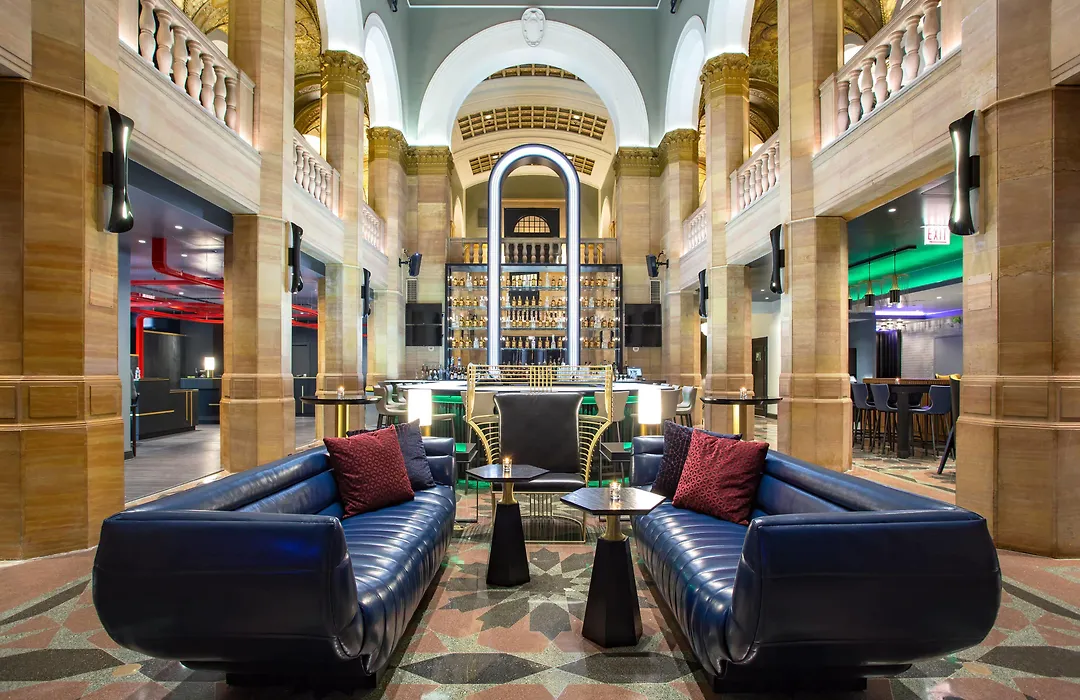 Dining is available at Midland Social Club, which offers Chicago-inspired dishes for breakfast, lunch, and dinner. Drinks are served at the MSC Bar, where mixologists create cocktails against a backdrop of vibrant street art. Room service is also available for added convenience.