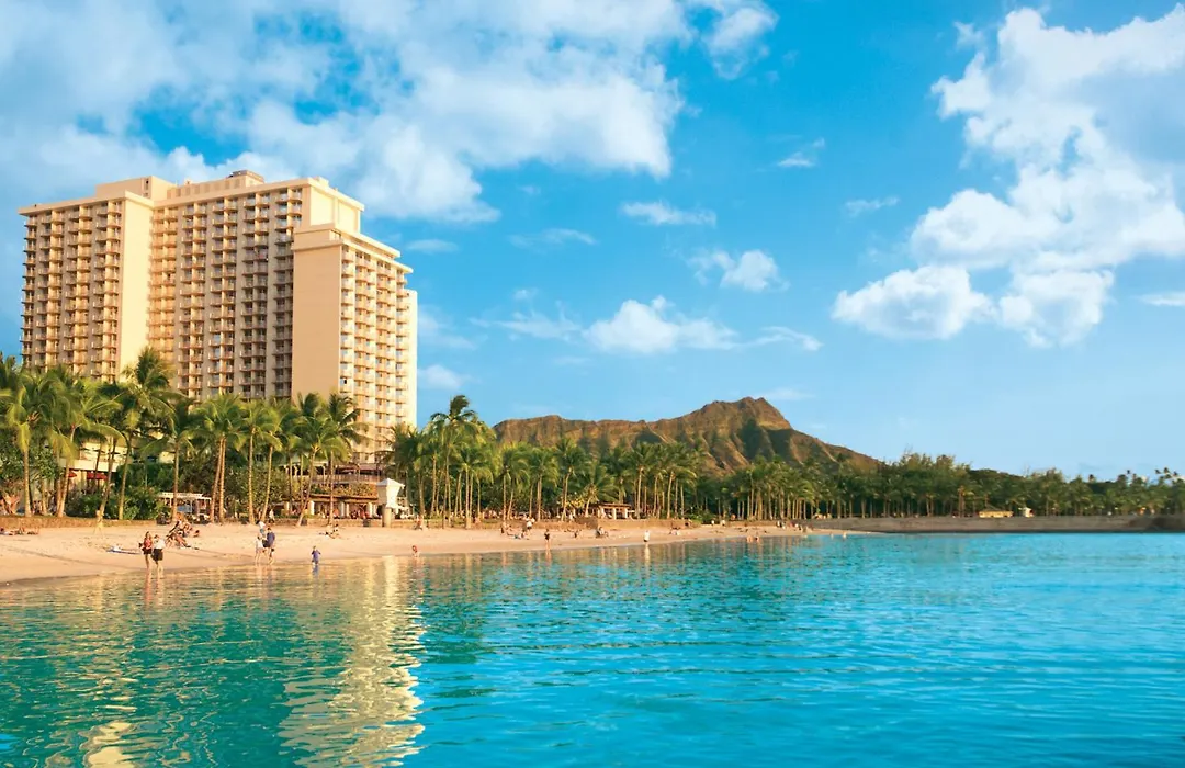 The hotel is located on Kalakaua Avenue, just steps from Kuhio Beach Park, which provides a calm swimming area and surf breaks. Nearby attractions include Diamond Head, Waikiki Aquarium, and the Royal Hawaiian Center, all within a short distance.