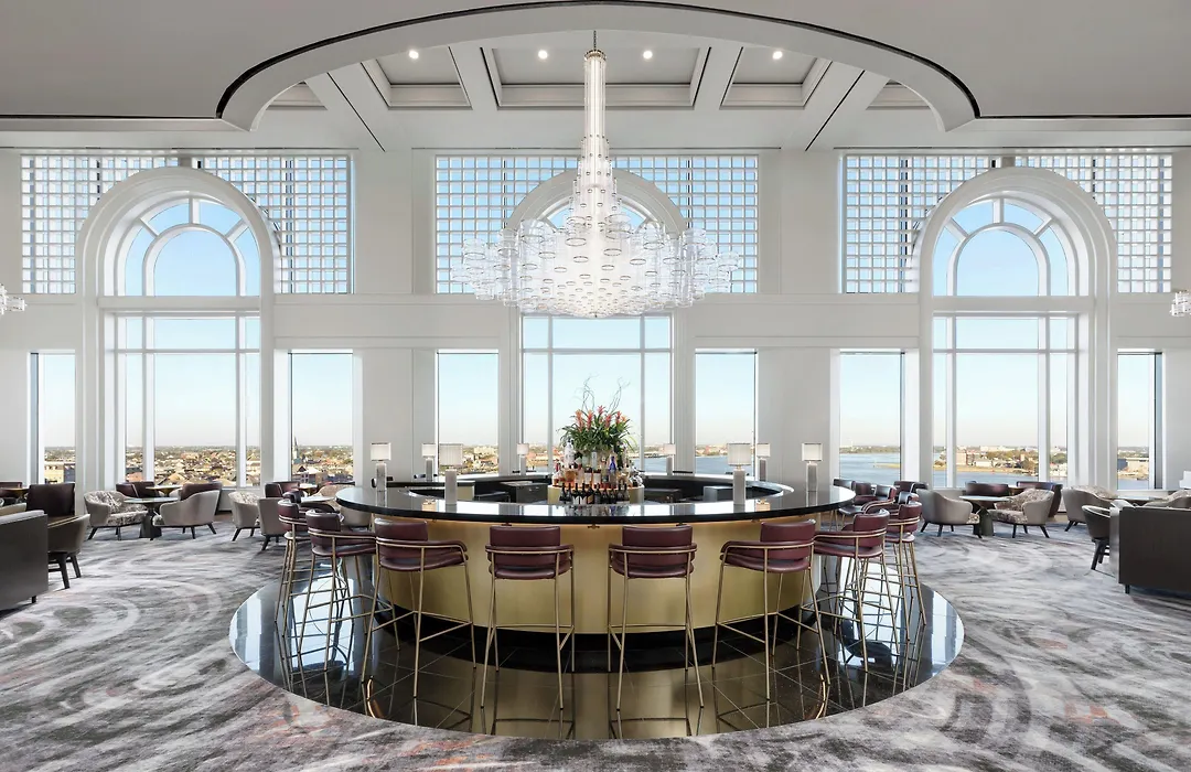 Dining options include Bistro at the Bend, offering a breakfast buffet and Cajun cuisine, and Observatory Eleven, a circular bar serving craft cocktails. Both venues are open daily, with the bar featuring inspiring river views.