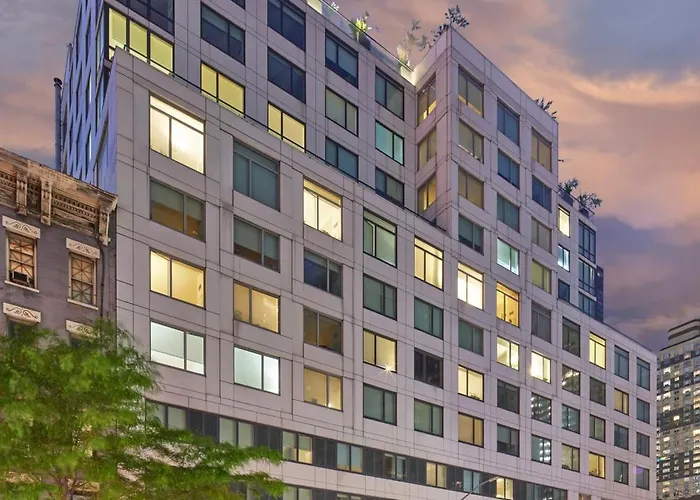 Truss Hotel Times Square is a modern 4-star luxury hotel situated in Hudson Yards, offering a sleek and upscale design. The hotel features a Rooftop Garden Terrace with panoramic views and a state-of-the-art fitness center. Guests are conveniently located just 5 minutes' walk from Times Square and close to popular attractions like Broadway and the Lincoln Center.