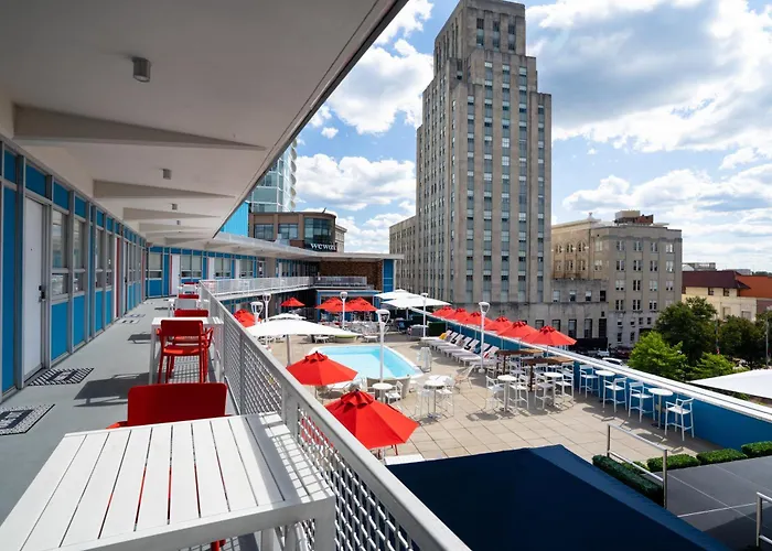 Unscripted Durham, Part Of Jdv By Hyatt features a rooftop pool with views of the Downtown Durham skyline and offers boutique accommodations with modern functionality, receiving a 7.9/10 rating on Booking.com. This 3-star Durham hotel provides amenities such as complimentary parking and a grab-and-go coffee shop on-site.