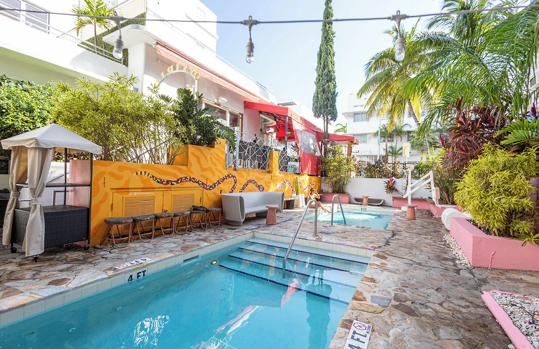 Viajero Miami (Adults Only) is a 4-star hotel centrally located in the Art Deco district of Miami Beach. This boutique hotel features a tropical chic style and multiple amenities, including shared dorm accommodations and private rooms with ensuite bathrooms.
